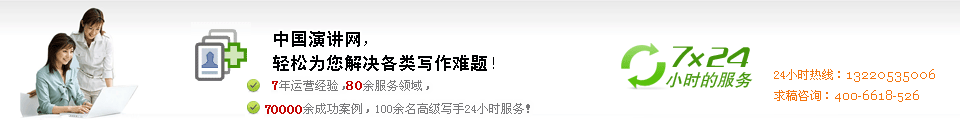 7年运营资历,70000多个成功案例,100多位高级写手24小时服务!求稿热线:13220535006 0539-8070637 8070638 因为专业,所以值得信赖! 返回演讲网首页